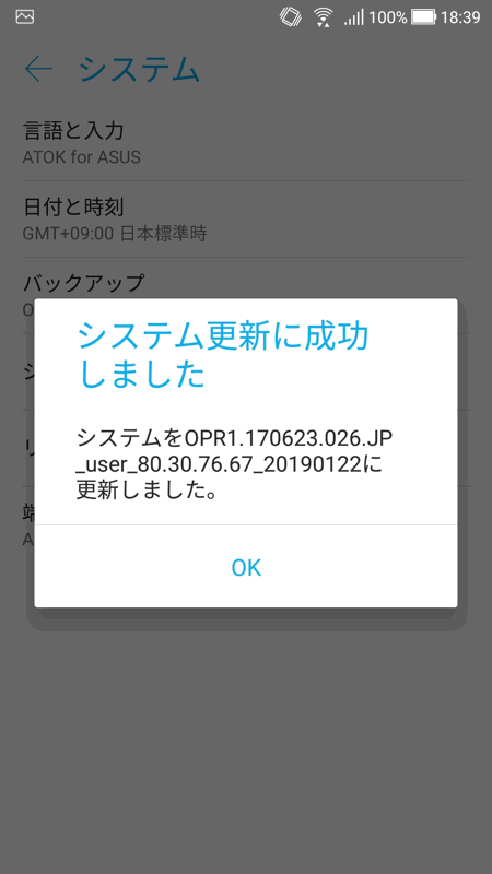 現在、メインで使用しているスマートフォンの「ZenFone Zoom S(ZE553KL)」ですが、先日、久しぶりにシステム更新の通知が来ました。