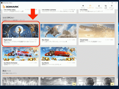 ついでに、家庭用PC向けの「Night Raid」でも試してみました。