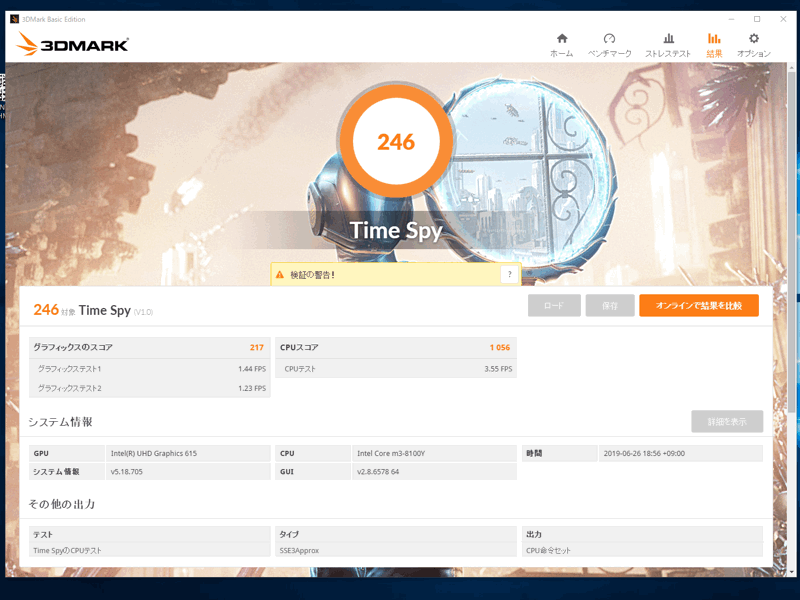 ゲーミングPC用向けとして「Time Spy」が推奨されていましたので、そちらでチェックをしました。