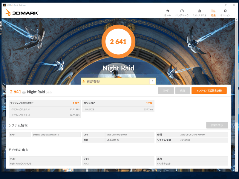 ついでに、家庭用PC向けの「Night Raid」でも試してみました。