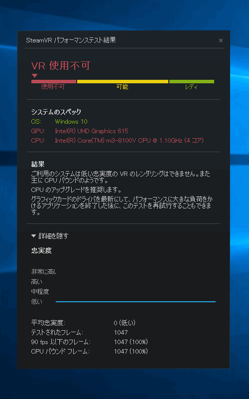ダメ元で、「SteamVR Performance Test」も試してみました。