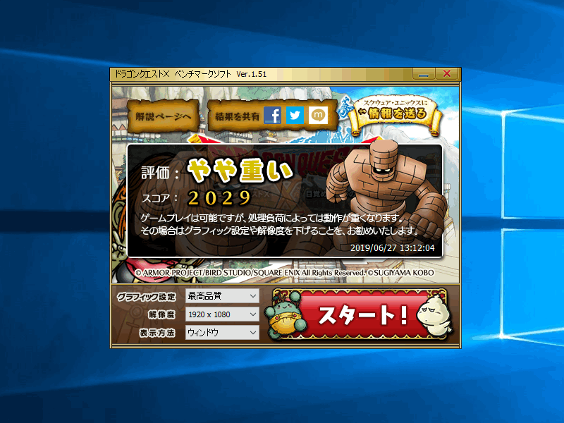 最後に、「ドラゴンクエストX」のベンチマーク。