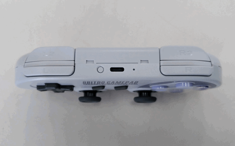 「L」、「R」ボタンの間に、ペアリングスイッチと、USBポートが配置してあります。