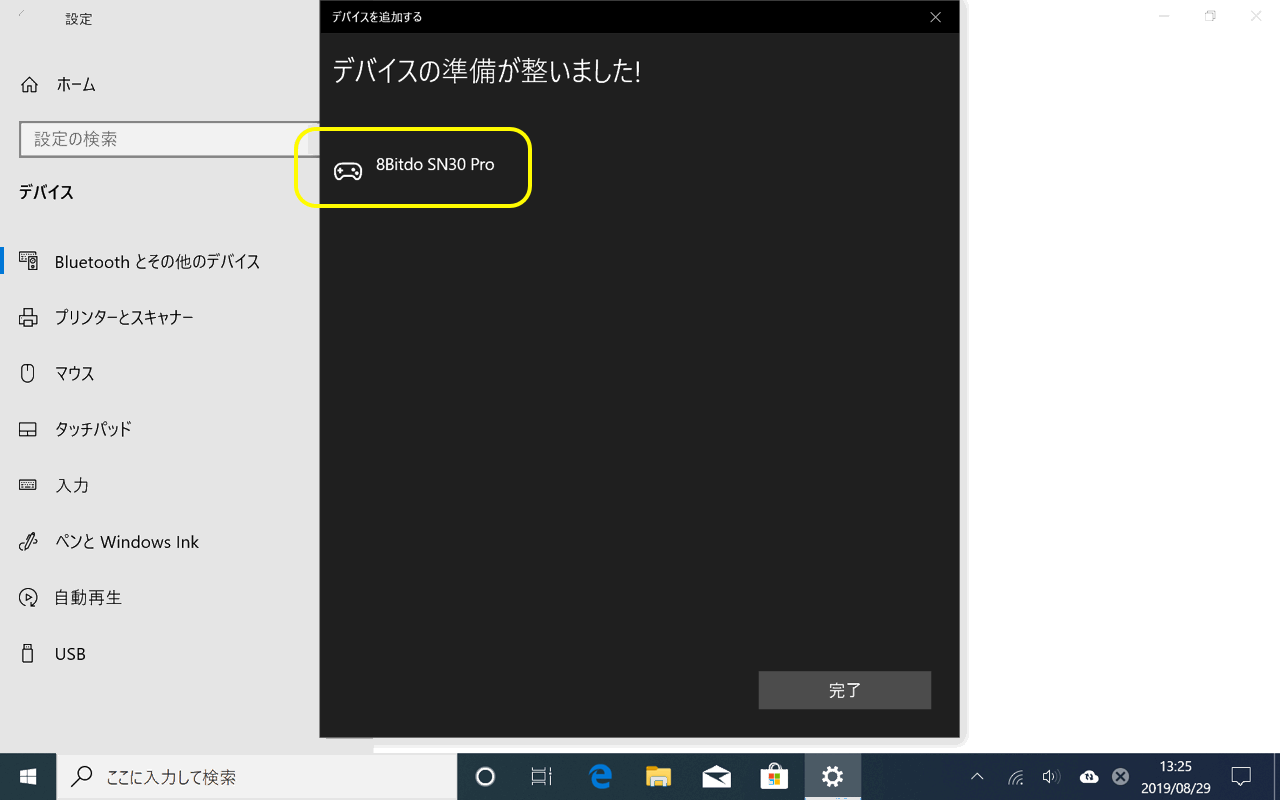 「8Bitdo SN30 Pro」という名称で認識されました。