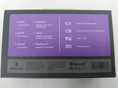 以前購入した、「FC30 PRO GAME CONTROLLER」の後継機種にあたり、「Rumble vibration:振動」と「Motion controls:モーションセンサー」の機能が追加されています。