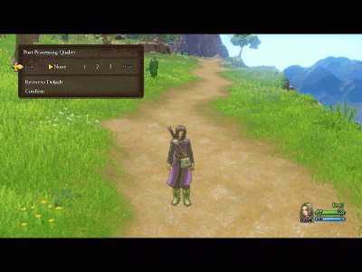 (この画質の設定はフィールドや人物などの画面だけです。メニュー表示やマップ表示はクッキリ行われますので、文字が見にくいなんてことはありません。)