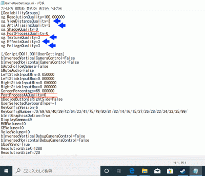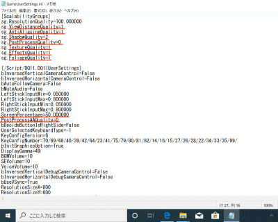 「GameUserSettings.ini」をいじって、色々と変更ができることを確認した上で、一番良さそうな設定を模索していきます。