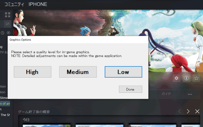 このゲームには「Graphic setting tool」が用意されており、そこでグラフィックの品質選択ができました。