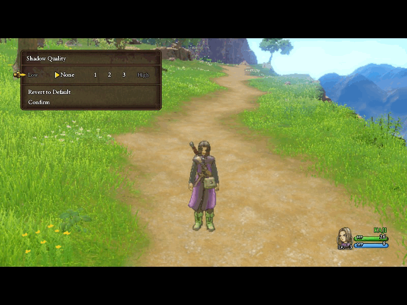 (この画質の設定はフィールドや人物などの画面だけです。メニュー表示やマップ表示はクッキリ行われますので、文字が見にくいなんてことはありません。)