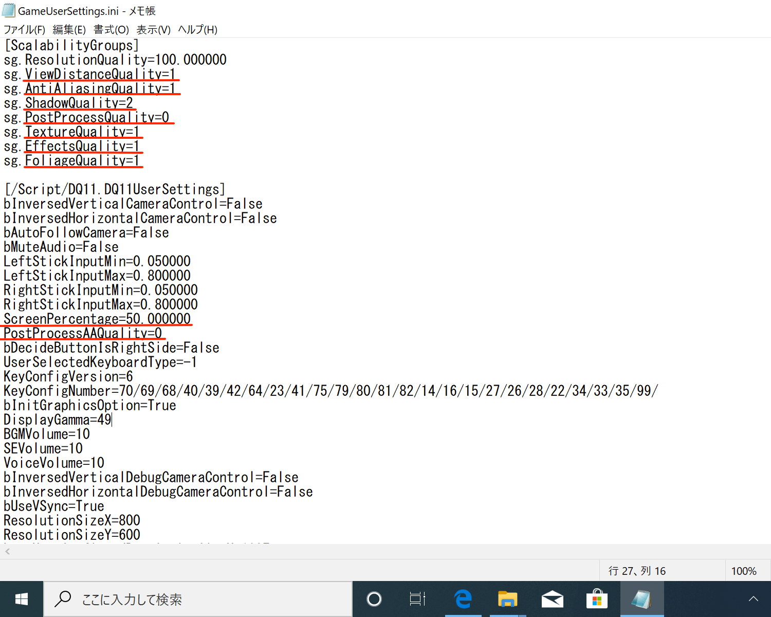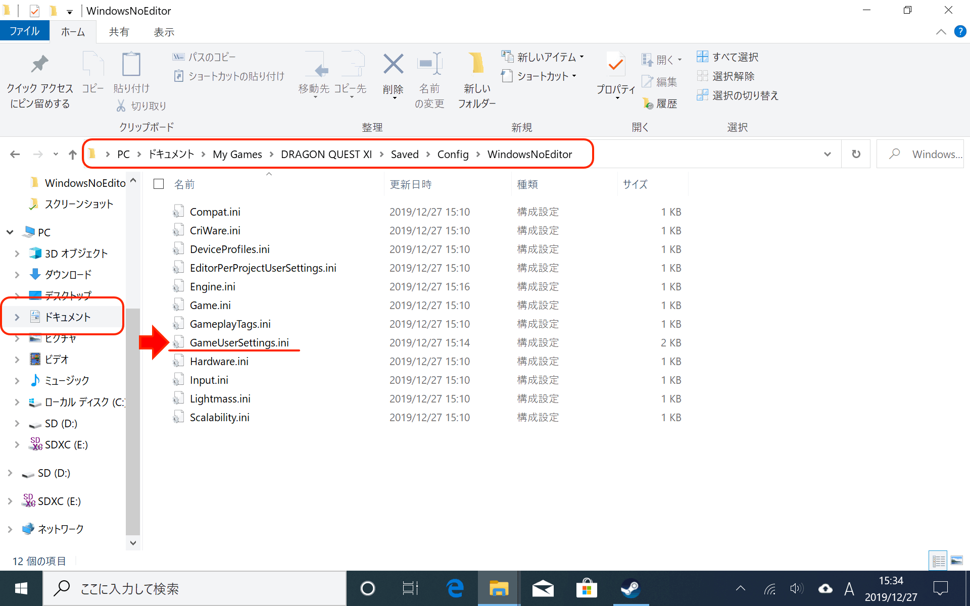 ドキュメント > My Games > DRAGON QUEST XI > Saved > Config > WindowsNoEditor