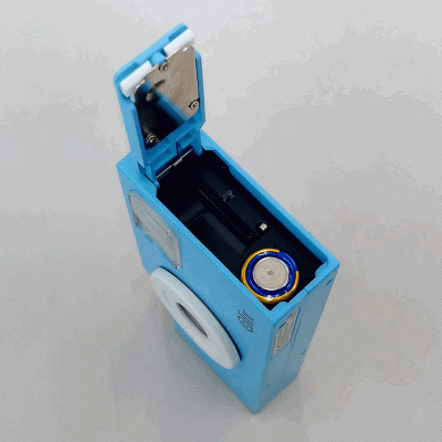 どこにでも売っている乾電池式(単三2本)なので、外出先でバッテリー切れを心配する必要もありません。