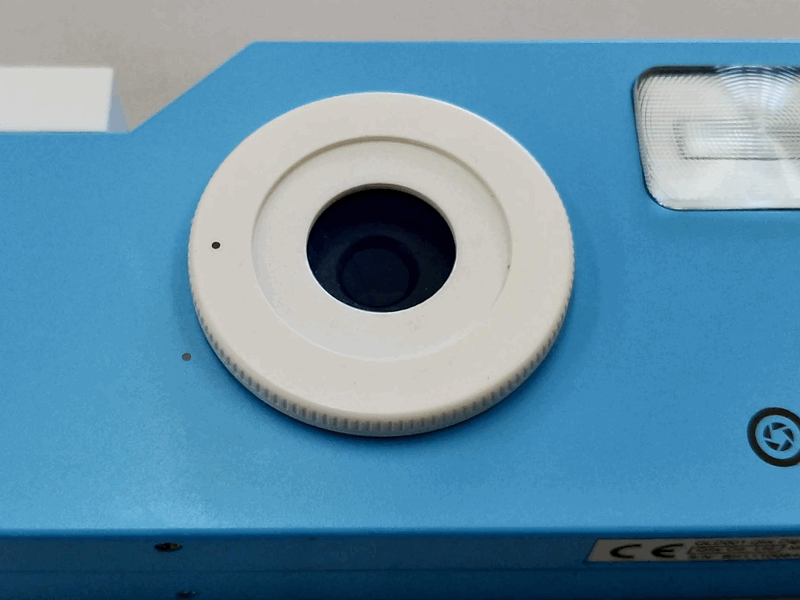 このカメラですが、レンズプロテクターとシャッターボタンが取り外し式になっており、他のカラーのものと交換可能です。