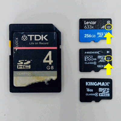 容量の面で注目するのは、「SD」や「microSD」という文字の下にある文字です。