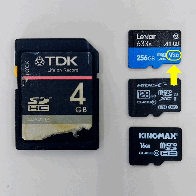 ビデオカメラやアクションカメラ、ドライブレコーダーなど、映像分野の機器でもSD(microSD)カードが使われるようになり、「ビデオスピードクラス」という規格が使われるようになりました。