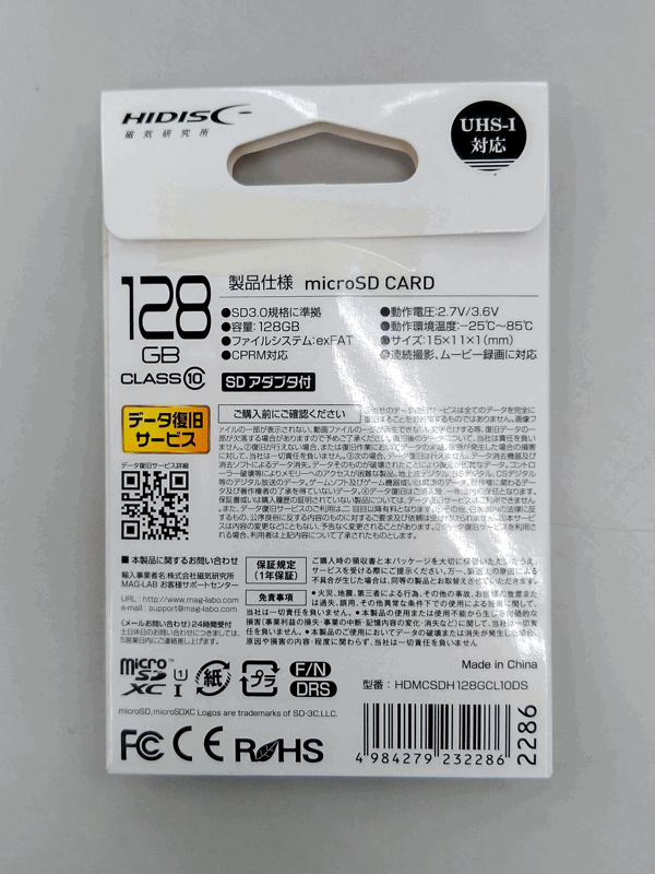 実は、今回、「128GB」の「microSDカード」を購入しました。