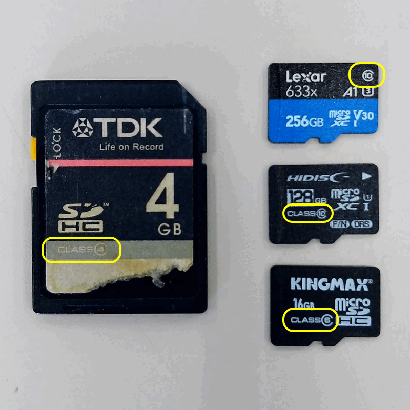 そこで、「スピードクラス」という速度の規格が生み出され、「SDHC」以降のカードに表記されるようになりました。