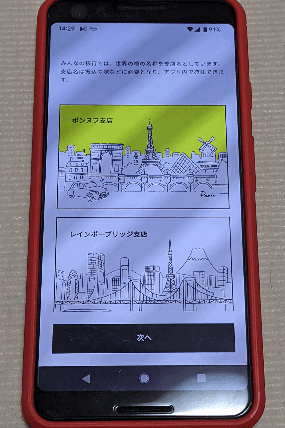 このあと、「みんなの銀行」の支店を選択する画面になりました。