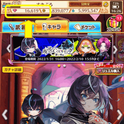 今回、「叛逆のCOLOR’s episode2」のイベントが開催されたので、それに合わせて、貯まっているジュエルについて話題にしました。