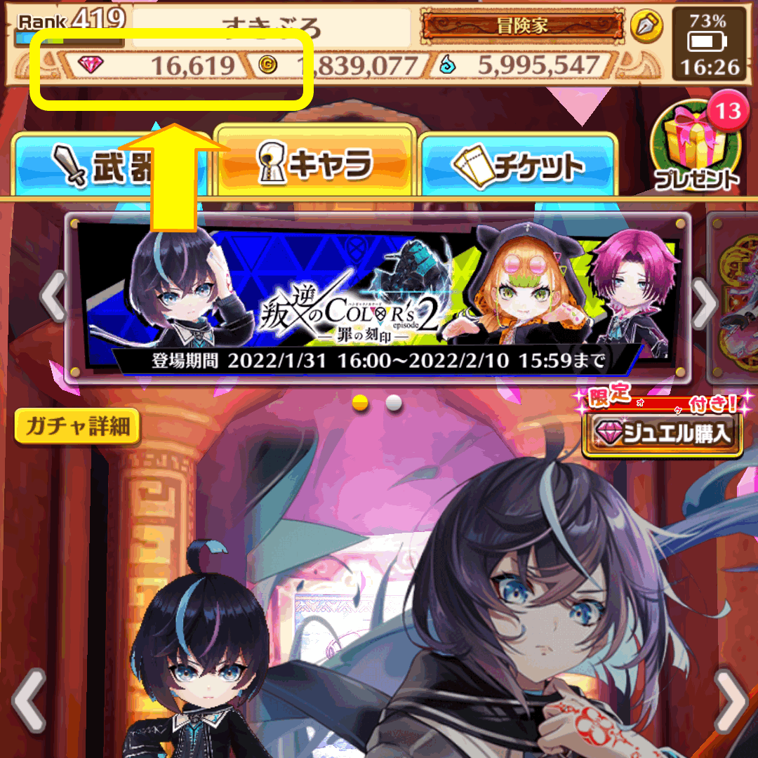 今回、「叛逆のCOLOR’s episode2」のイベントが開催されたので、それに合わせて、貯まっているジュエルについて話題にしました。