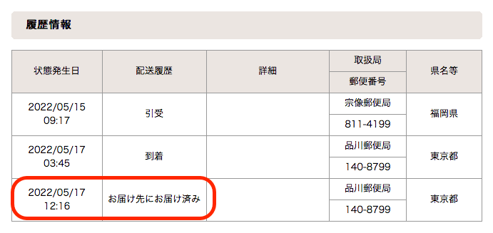 こちらは、「5月13日」に受け取りをしました。