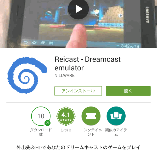 まずは「Google Play」から「Reicast – Dreamcast emulator」インストール。