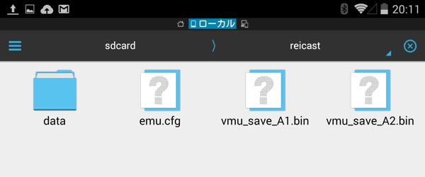 初期化の作業で「data」フォルダ内に「vmu_saveA1.bin」等が作成されます。