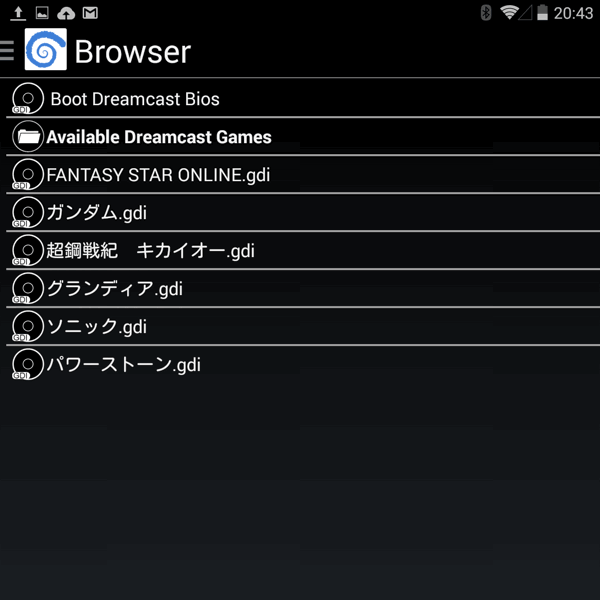 すると、 reicast Browser内に、Biosと、用意したソフトが表記されるはずです。