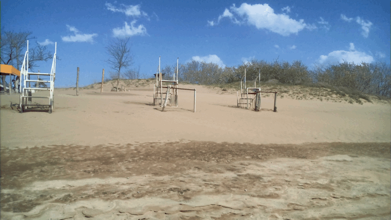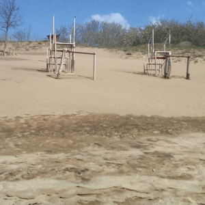 砂丘の砂で、砂嵐が巻き起こっていて、バチバチと砂が体に当たって、ちょっとイタい、、、