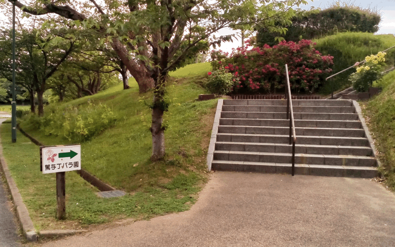 上の写真の風車のような展望台のある場所に「バラ園」はあります。