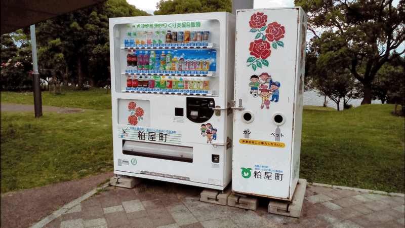 ちなみに、公園内の自動販売機にも、バラの絵が、、、