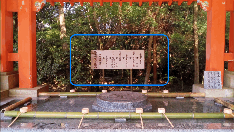 「手水舎」には、参拝順路の案内もありました。