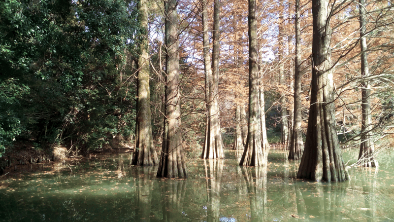 沼沢地での根元が少し水につかった状態で自生することが多く、日本ではヌマスギとも呼ばれています。