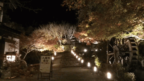 今回は、夜間にライトアップされた紅葉を見に行きました。