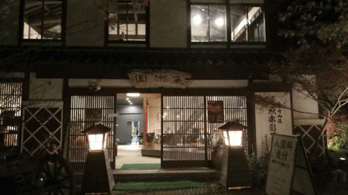 ライトアップされた屋敷の庭の木々は見応え十分です。