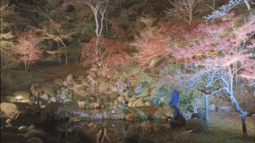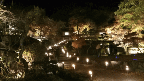 庭園全体がライトアップされており、幻想的な空間になっています。