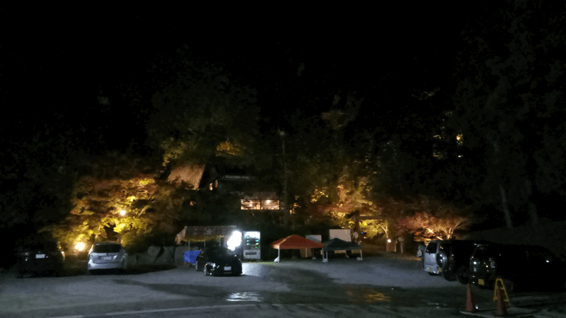 駐車場から見ても、庭園がライトアップされていることが確認できます。