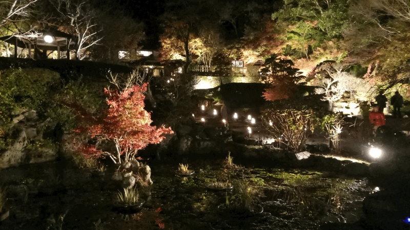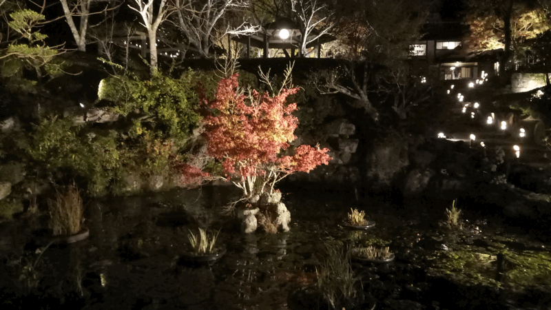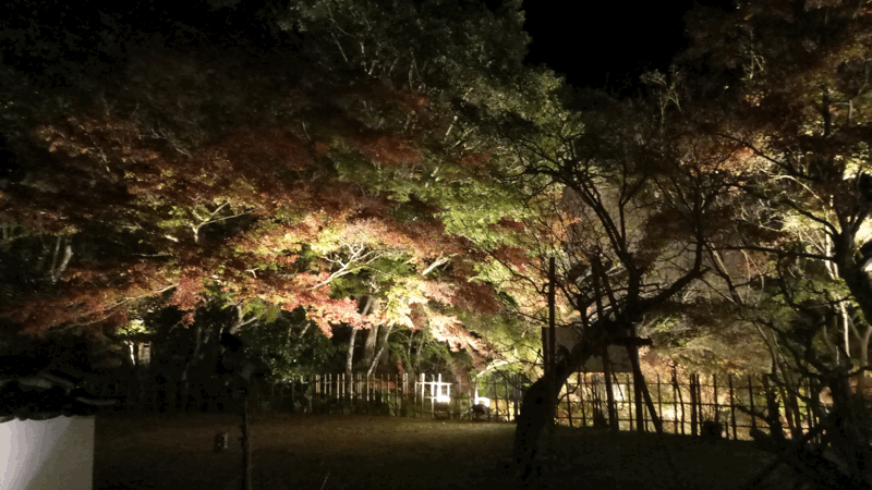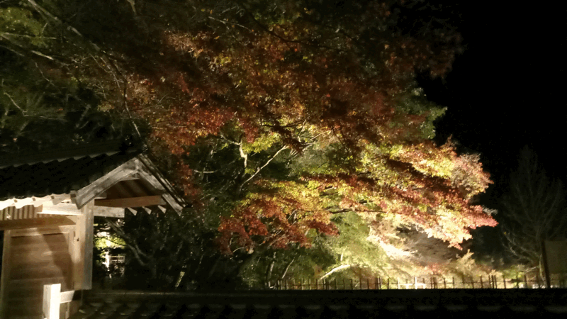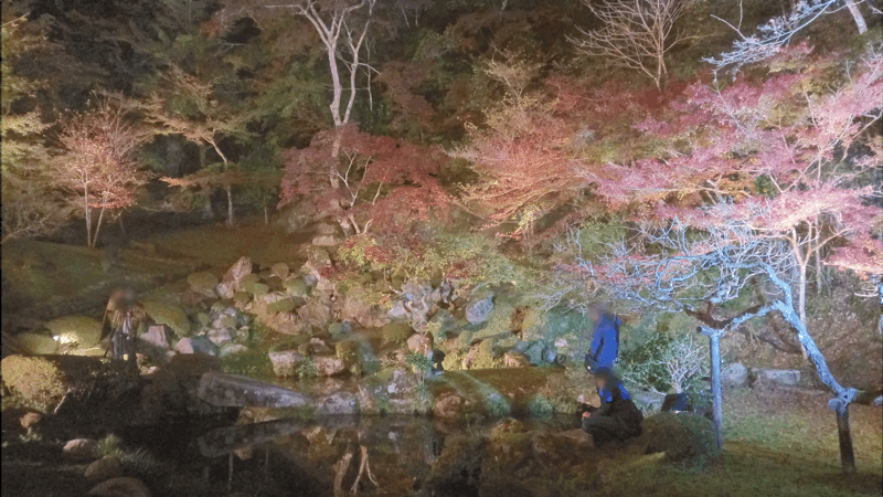 今回は、夜間にライトアップされた紅葉を見に行きました。