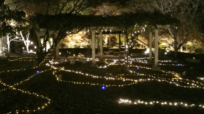 庭園内には、イルミネーションのようなライトアップをされている場所もありました。