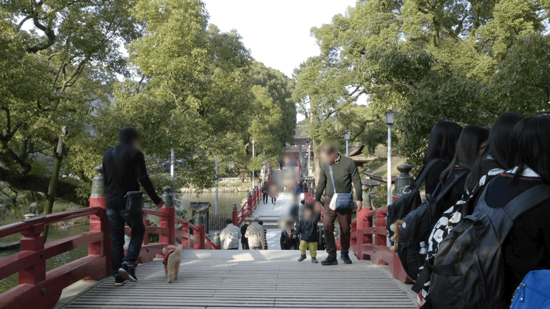 鳥居をくぐり、先へと進むと、太宰府を象徴する参道の赤い橋。