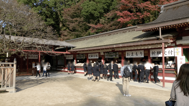 本殿周りのお守り売り場は、修学旅行の学生がたくさん。