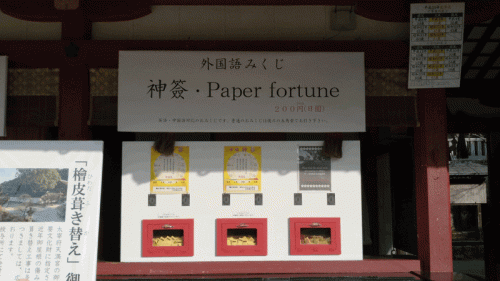 それから、海外の観光客も多いのでしょう。「外国語みくじ」なんてものもありました。