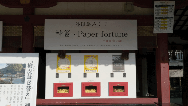 1回「200円」、、、おみくじは英語で「Paper Fortune」ですか。