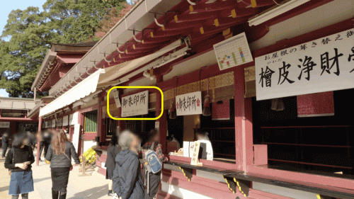 さて、御朱印は?? というと、本殿の周りにあるおみくじ売り場の隣にあります。