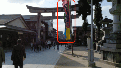 参道の途中には「伊勢ヶ濱部屋」の力士の「のぼり」などが掲げられています。