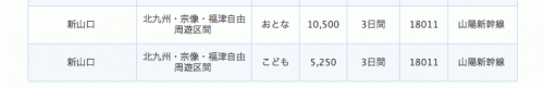 ちなみに、「新山口」からのチケットの料金は「おとな 10,500円 / こども 5,250円」です。