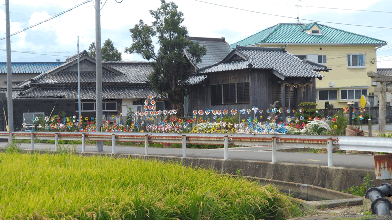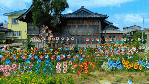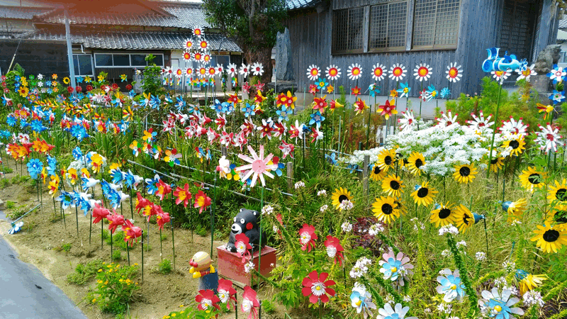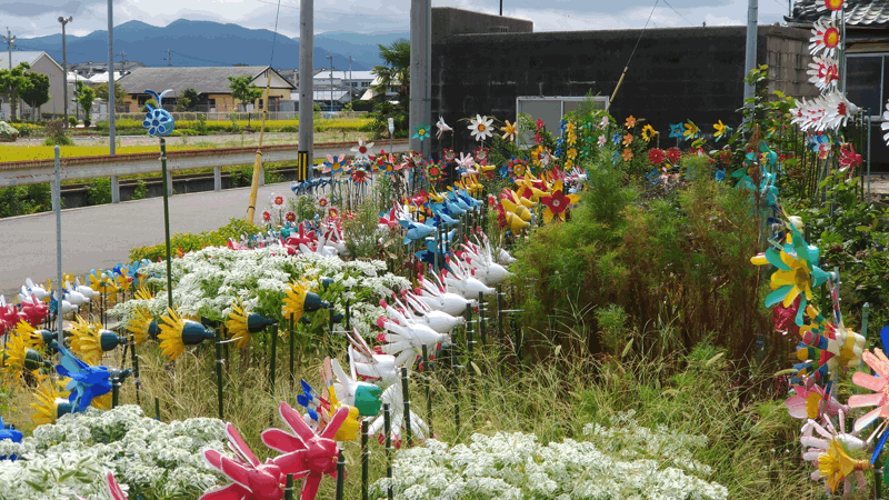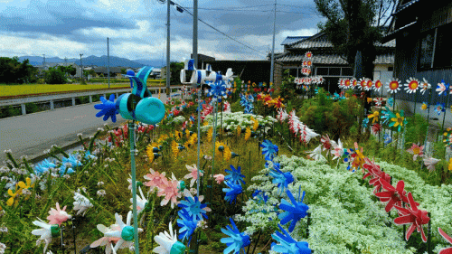 このペットボトルの花畑なんですが、地元のおばあさんが一人で作成したそうです。