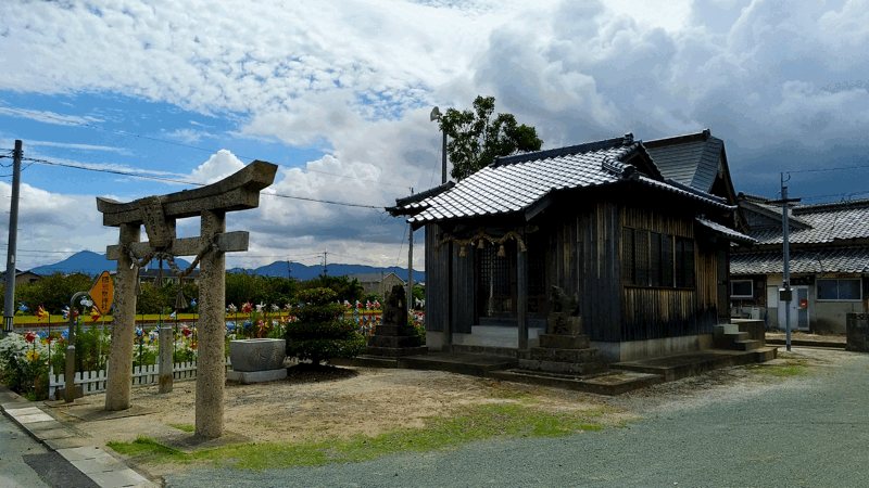 遠賀川沿いの住宅地の中にある小さな神社です。