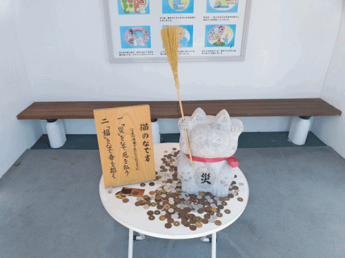 建物の中には、「宮若追い出し猫」の像が置いてあります。