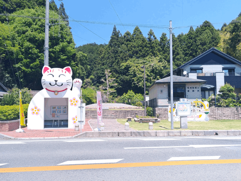 宮若市にある「追い出し猫」の建物のある公園で、「猫塚公演前」のバス停を兼ねています。