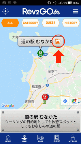 インストールしたことですし、宗像市唯一のポイントである「道の駅 むなかた」に行ってみることにしました。
